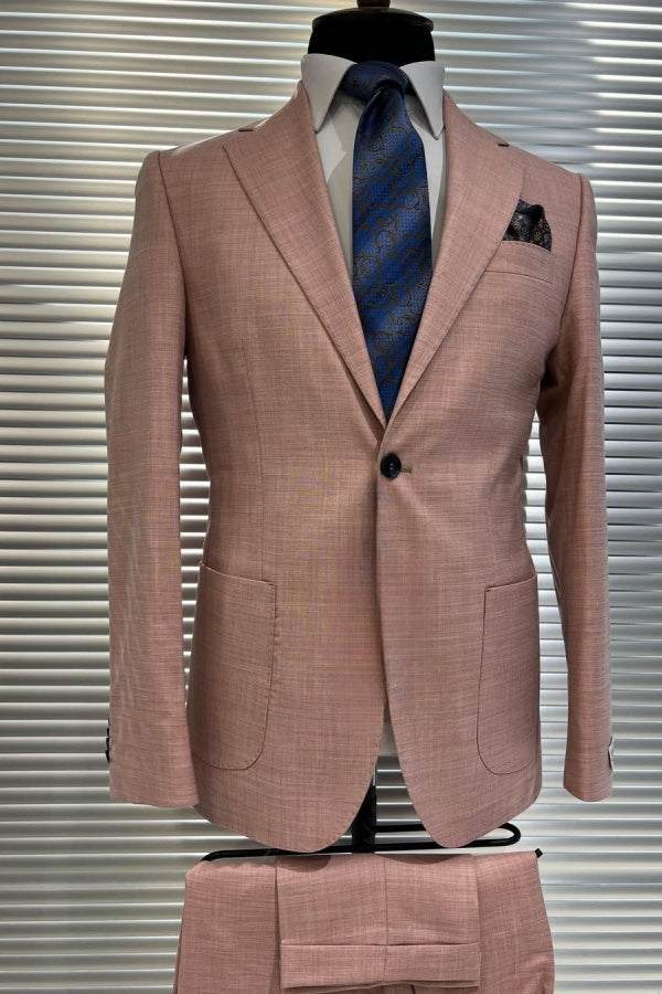 • Charming Light Pink Peaked Lapel Business Men Suits