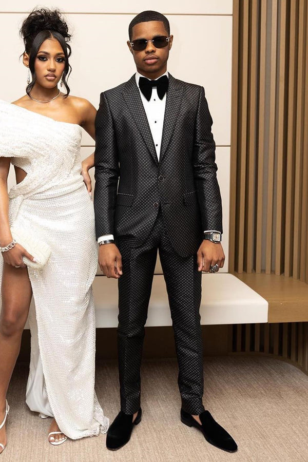 • Close Fitting Black Jacquard Peaked Lapel Prom Men Suits