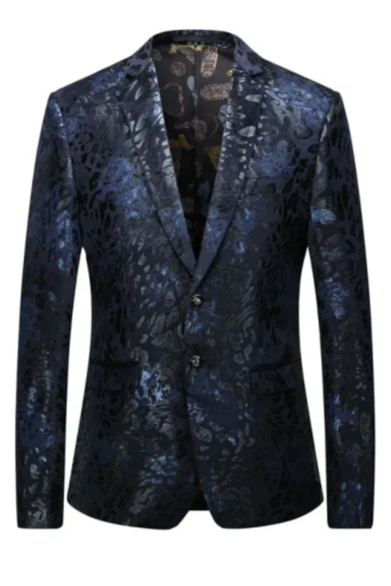 Color: Dark Blue, Black Button: Single Breasted Occasion: Prom, Wedding, Business Neckline: Notched Lapel Material: Polyester & Polyester Blend Pattern: Jacquard Piece: One Pieces