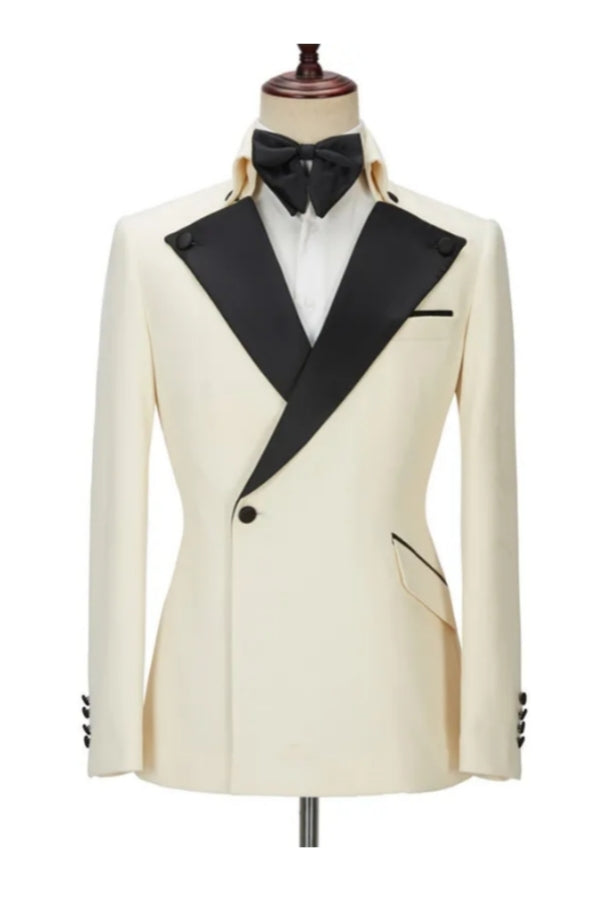 • Gentle Off White One Button Peaked Lapel Prom Men Suits