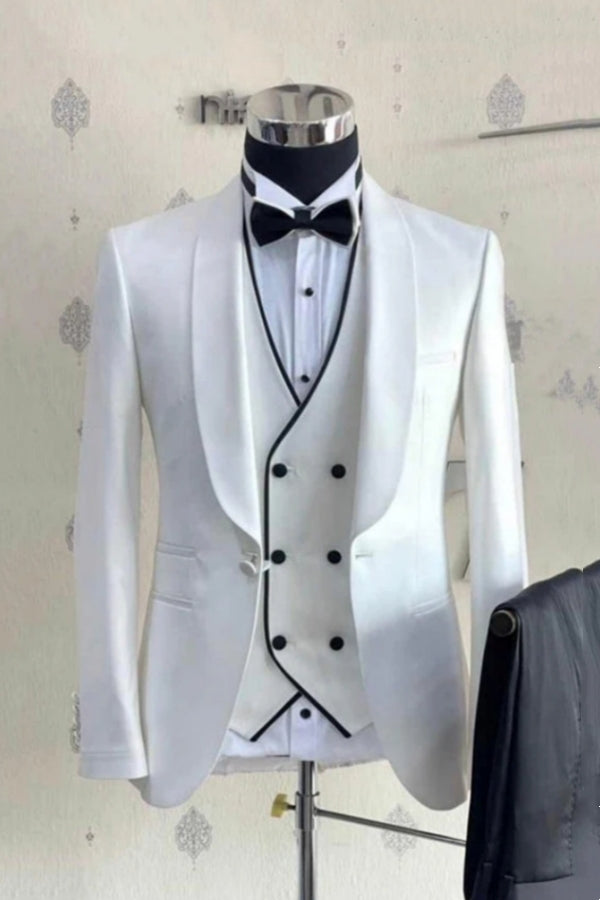 • Gentle White Shawl Lapel Wedding Suits With Waistcoat