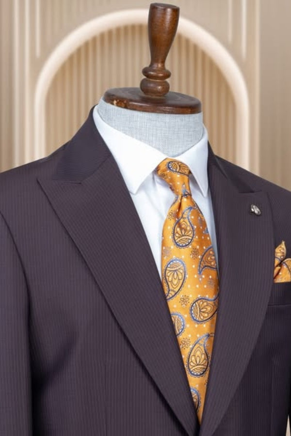 • Glamorous Chocolate Pinstriped Big And Tall Business Men Suits
