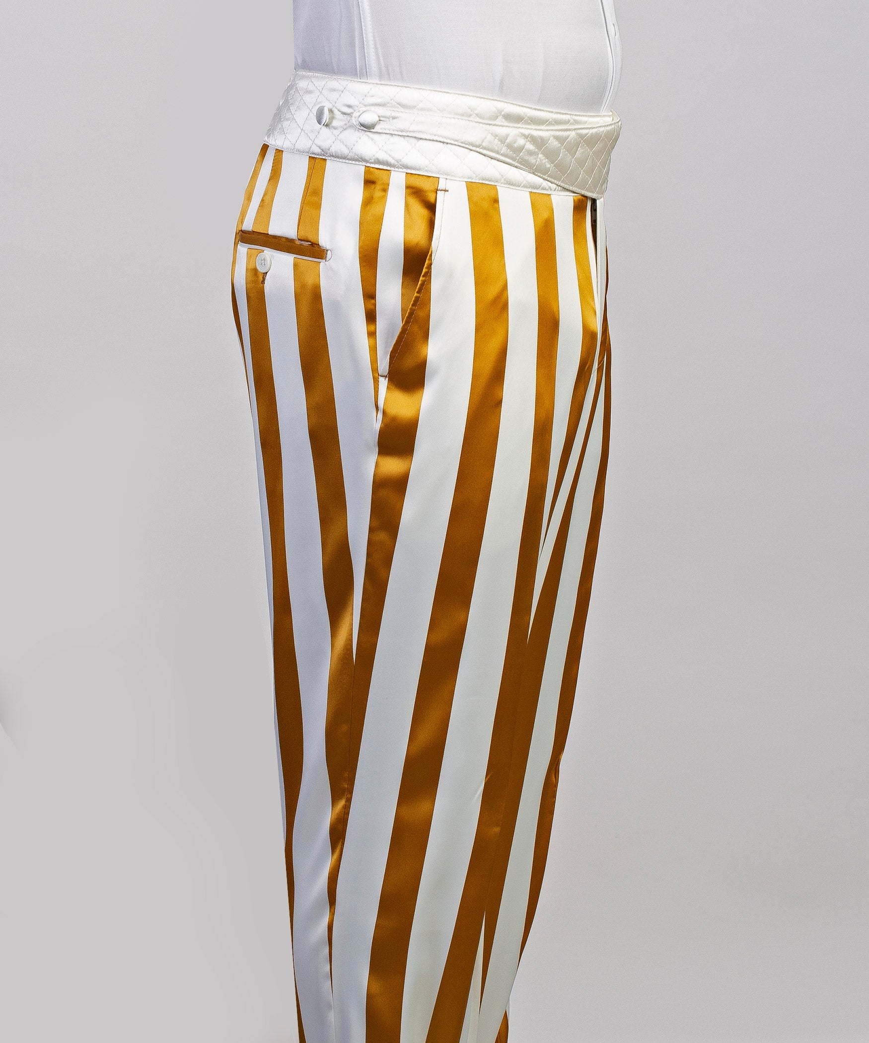 • Light Brown And White Stripe Shawl Lapel Prom Suits With White Belt