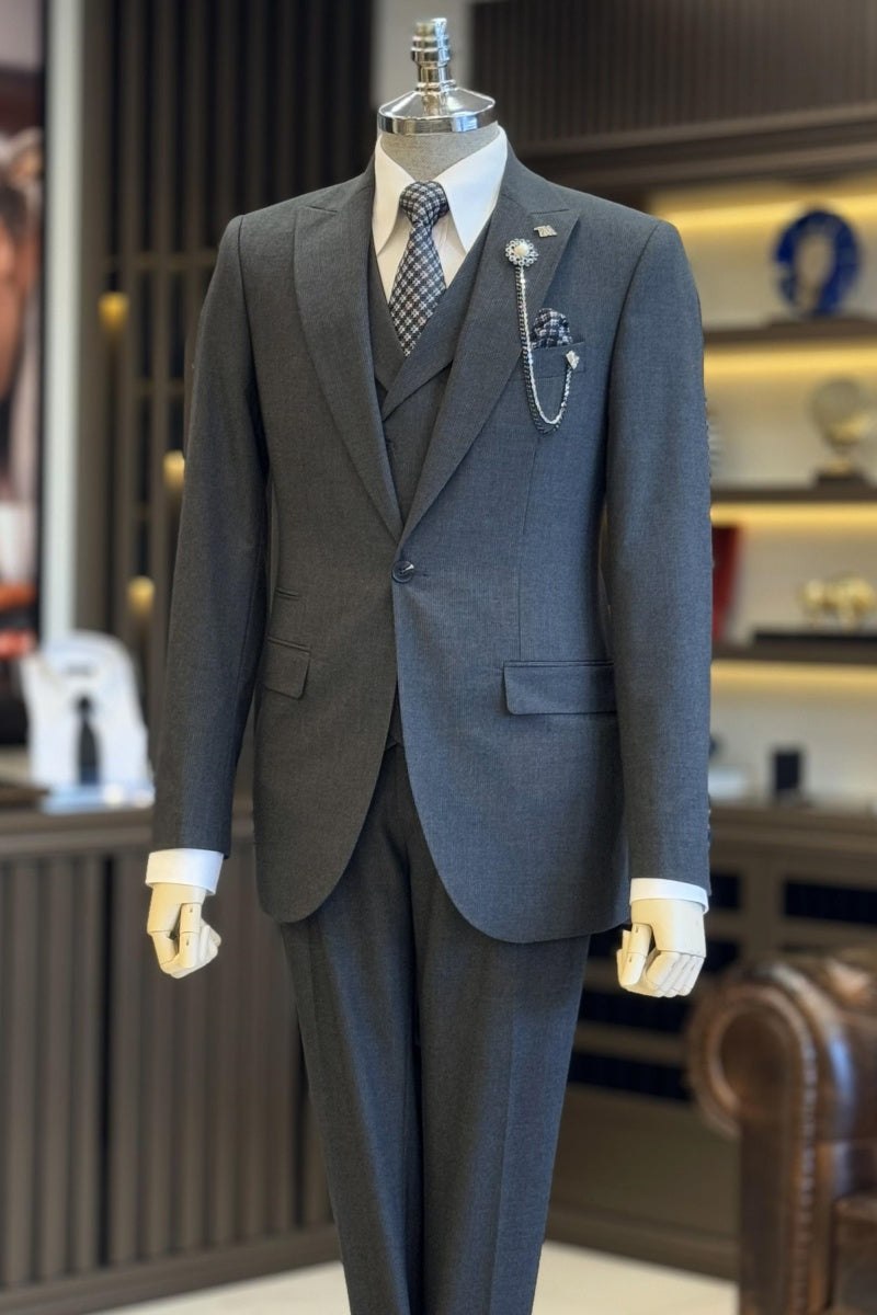 • Modern Dark Gray Slim Fit Men's Formal Suits With Waistcoat In Stock