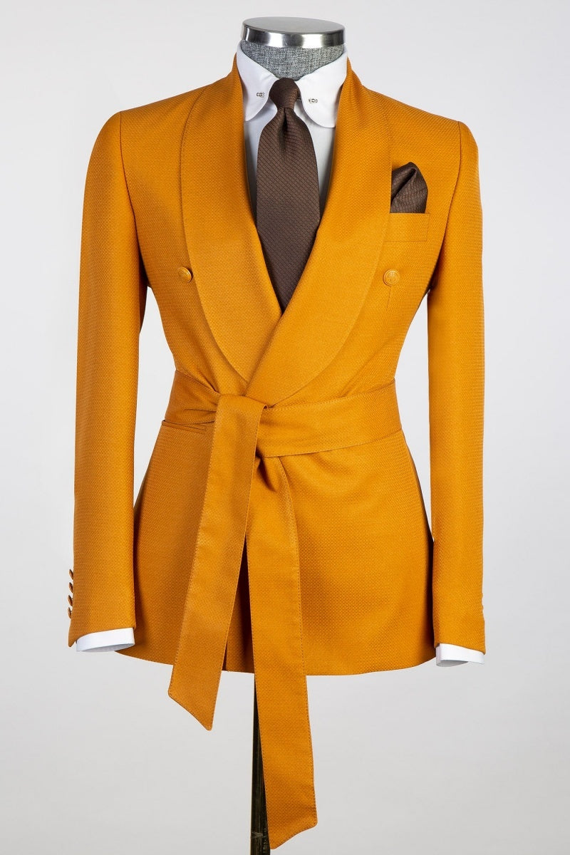 • Modern Earthy Yellow Close Fitting Men Prom Suits With Belt