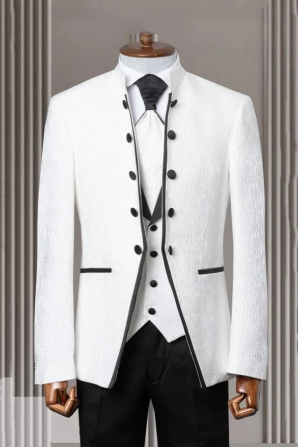 • Modern White 3 Pieces Shawl Lapel Jacquard Wedding Men Suits