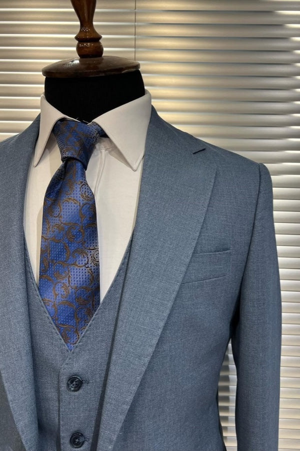 Stylish Blue 3 Pieces Peaked Lapel Business Suits