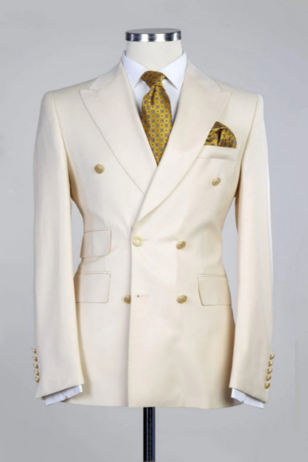 • Stylish Off-White Peaked Lapel Double Breasted Prom Suits